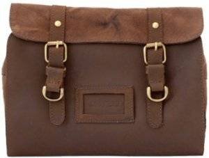 Combination oiled leather and fabric gents washbag 26cm x 20.5cm x 6cm. Large detachable zipped fabric spongebag. Long zipped pocket suitable for toothbrush and toothpaste. Pocket with velcro fastening and 2 slip pockets. Sturdy hanger. Decorative buckles with press stud closures.