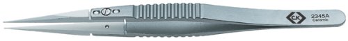 Ceramic tips mounted onto a nickel plated carbon steel bow. Fine, straight tips.