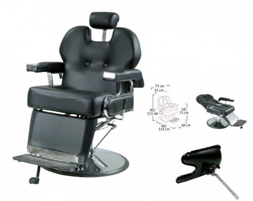 Fauteuil Portsmouth noir avec appui-tête + repose pieds. Coloris unique siège noir. Dossier et repose pieds basculant, pompe hydraulique bloquable. Lave-tête avec tige plate réf 464506+439769 OFFERT
