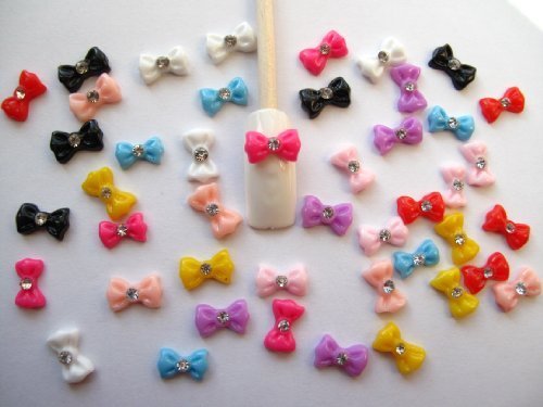 *** Nail Artwork 3d Forty Five Items Combine Bow/Rhinestone for Nails, Cellphones 1.2cm ***Subject Matter : Resin ***Quantity : Forty Five Items