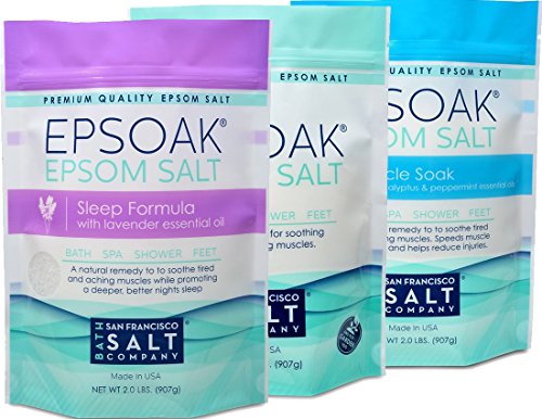 • EPSOAK 3 PACK – Includes a 2lb bag of: Sleep Formula, Muscle Soak, Original Unscented Epsoak Epsom Salt By Epsoak (San Francisco Bath Salt Company)