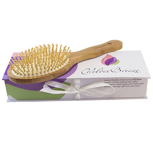 We are glad to introduce you our VelvetBreeze bamboo hair brush that is steadily gaining popularity among both professional hairdressers and regular users.It can be excellent gift for a health and environment conscious person who has hair (thin, thick, curly). It will be perfect present for women, men and toddlers. Because bamboo bristles and wooden pins are gentle and rubber pad is soft, this brush is suitable also for people with sensitive scalp and dandruff