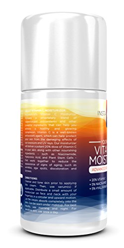 - Strong 20% Vitamin C Protection – Our moisturizer contains a robust 20% concentration of Vitamin C to help deliver the best results to your skin. Vitamin C is a powerful antioxidant agent that protects your skin from the damaging effects of sun exposure, all while restoring healthier skin. Daily application will help to diminish the appearance of wrinkles, fine lines, and more.