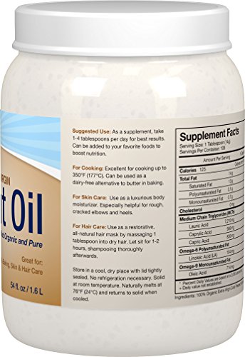 • Unrefined, extra-virgin, cold-pressed coconut oil
