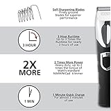 Introducing the world’s first Lithium Ion Grooming product – the Wahl Lithium Ion charged trimmer/groomer. The Wahl Lithium Ion is the most advanced rechargeable battery technology in the industry. It’s lighter weight, has almost no charge loss in storage, is environmentally smart and has no memory issues. Best of all, it provides 3x the run time, 2x the torque, a 3-minute quick charge, 1 hour full charge and 10x the storage life all of which typical rechargeable trimmers cannot do. This trimmer kit includes a trimmer head, t-blade, dual shaver head, six position guide, 3 trimmer guides and 3 t-blade guides.